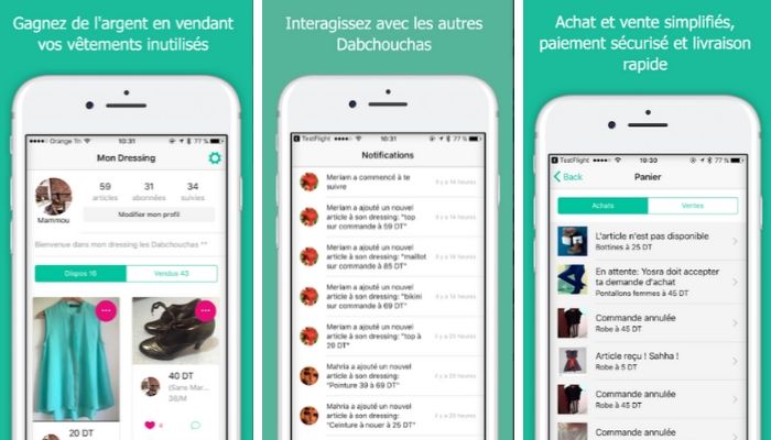 Dabchy est une application qui vous servira de vide-dressing ! Elle vous permettra de vendre et d’acheter des vêtements neufs ou d’occasion.