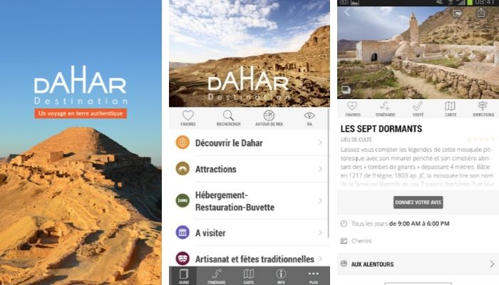 L’application “Destination Dahar” sera votre compagnon de voyage pour vous guider à travers la montagne du Dahar dans le sud-est Tunisien. Totalement gratuite, vous pouvez naviguer en offline et explorer les sites naturels et monuments historiques du Dahar.