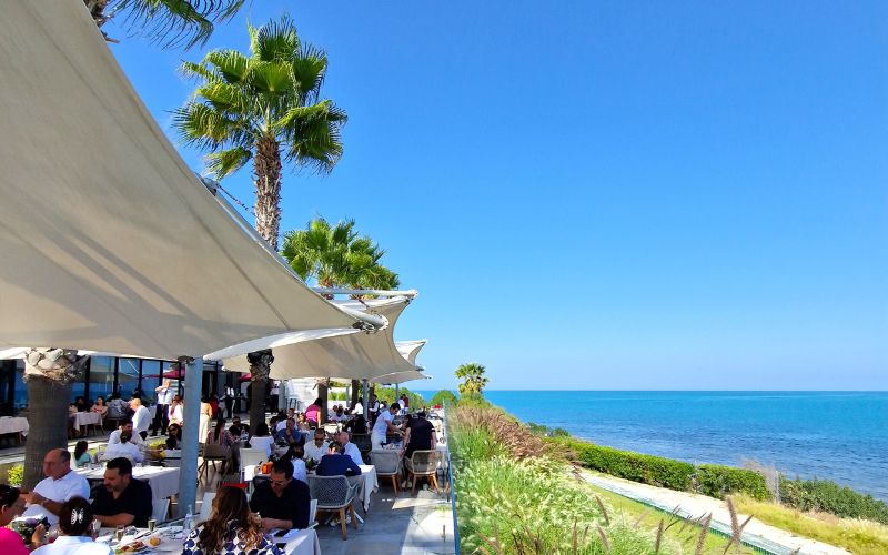 Outre son espace intérieur agréable et spacieux, le restaurant Horizon propose également une superbe terrasse offrant une vue mer exceptionnelle, idéale pour les journées ensoleillées. Que vous préfériez vous installer à l'intérieur ou à l'extérieur, vous pourrez toujours profiter de cette magnifique vue sur la baie de Gammarth.