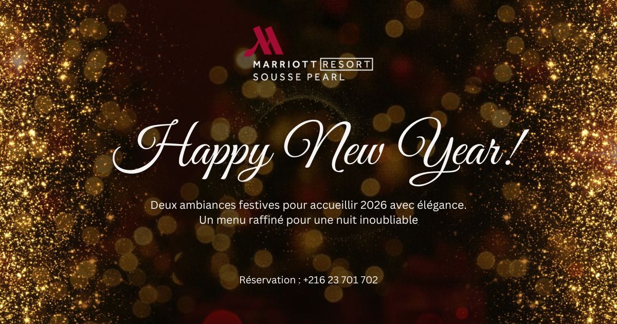 Le 31 décembre 2025, le Sousse Pearl Marriott Resort & SPA vous invite à célébrer le passage à la nouvelle année dans une atmosphère chic et festive, où gastronomie, musique et spectacle se rencontrent.