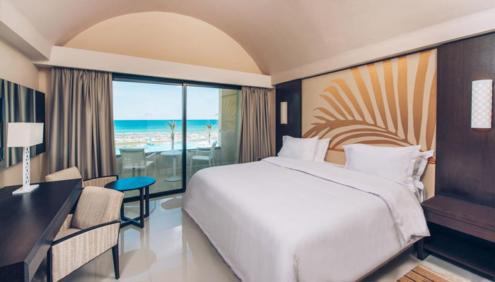Passons à la visite des chambres. Entièrement rénovées, les suites et les chambres de l’Iberostar Selection Kuriat Palace sont très spacieuses et lumineuses. Vous pouvez d’ailleurs opter pour une vue sur le jardin ou sur la mer et toutes les chambres disposent d’un balcon ou d’une terrasse.